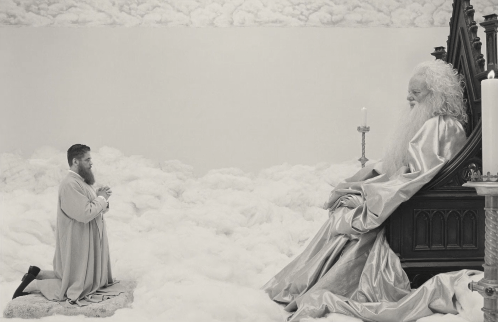 The fourth dream comes to us after Zsa Zsa drowns in quick sand. Again, another near death experience. In the fourth dream, Zsa Zsa prays before God (Bill Murray). Zsa Zsa is looking for a handout here. God holds out both fists. Zsa Zsa chooses one only for God to reveal nothing. God leaves Zsa Zsa by saying, “The yield of Adam’s loins crucified my only begotten son.” God’s creation sets off a chain of events that lead to his son’s crucifixion: divine tragic irony. Zsa Zsa understands here in a reflexive moment for him that his yields, completing his big project, is not what is going to save him, rather it is the exact thing that is going to kill him.